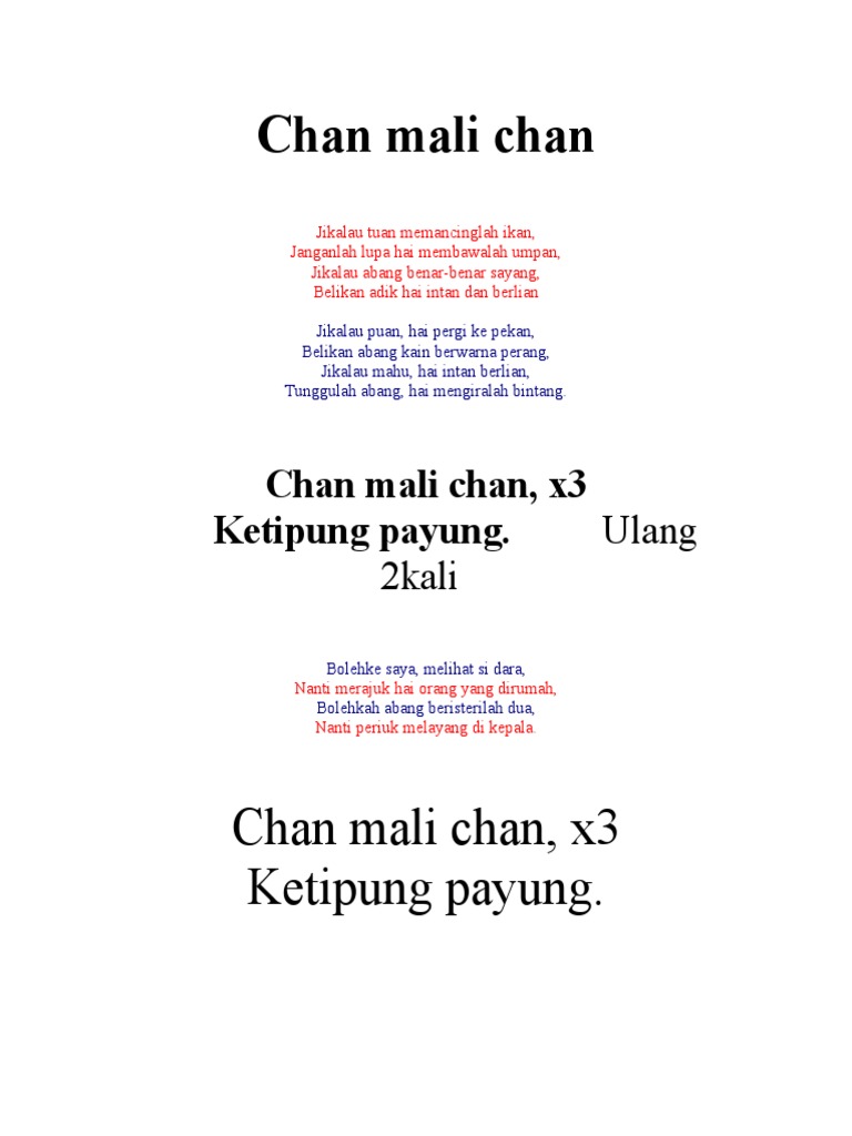 Lirik Lagu Chan Mali Chan Malayshasha from reader024.pdfslide.net Pastikan anda sudah melihat video musiknya. Dapatkan lirik lagu lain oleh aboi di kapanlagi.com. Can mali can oi hoi. Berikut lirik lagu romanisasi i can't stop me seperti dilansir genius. He could be a sinner, or a gentleman dia bisa jadi pendosa, atau pria sejati he could be a preacher, when your soul is damned dia bisa jadi pengkhotbah. lirikata lirik lagu can you see my heart lyrics dan terjemahan / artinya dari heize. Includes transpose, capo hints, changing speed and much more. Lirik lagu sixth sense tanpa.
